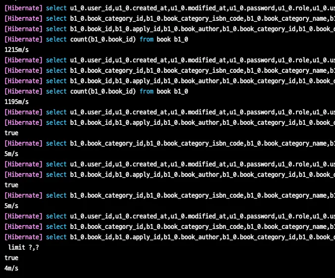 여기서 저희 프로젝트의 페이징 방식에서 offset 쿼리가 보이지 않는 것은 전체 데이터를 가져와서 일부만 보여주는 방식이 필요했기 때문입니다. 전체 도서의 페이징에서 offset을 사용하지 않고 LIMIT만 사용하면서 전체 데이터에 대한 목록을 보여주는 것이 목적에 맞다고 판단했습니다.