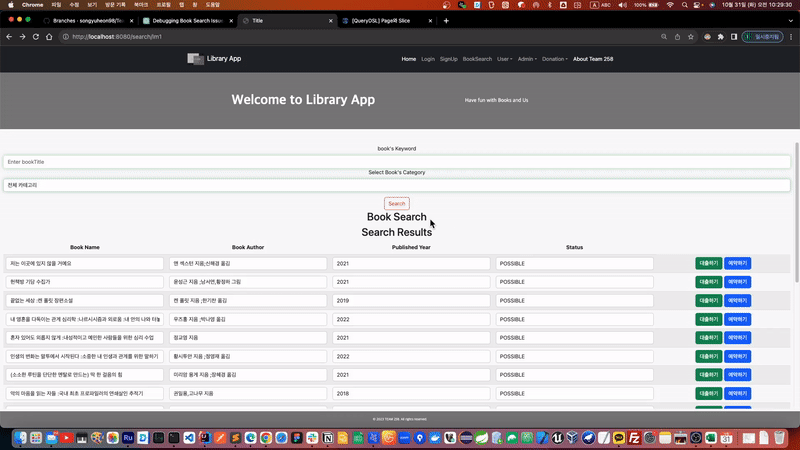 실제로 도서 목록이 나타나는 저희 프로젝트에서도 기본적인 페이징을 구현했었습니다. 하지만 각 페이지를 이동 할 때마다 약 1.0~1.2초가 소요될 정도로 “느리다”, “원활하지 않다” 라는 점을 직접 체감 할 수 있었습니다.