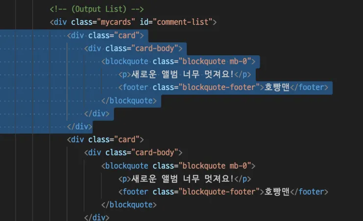 // 위 temp_html을 index.html의 #comment-list div에 붙여주기.