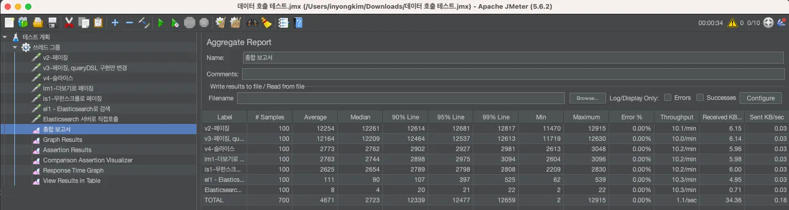 Elasticsearch는 기본적으로 데이터를 캐싱하여 검색 성능을 최적화하는데, 이는 반복되는 동일한 검색 요청에 대해 더 빠른 응답을 제공할 수 있습니다. 이러한 캐싱은 검색 결과, 필터링, 집계 등에 적용될 수 있습니다. 기본적으로 키워드 검색에 대하여 높은 성능을 가지고 있음과 동시에 동일한 검색 요청이 누적됨에 따라 계속하여 요청 속도가 증가하는 것을 살펴 볼 수 있습니다.