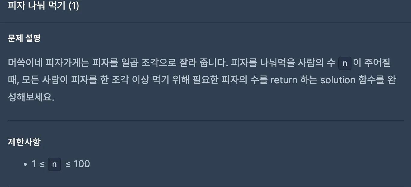 * 피자 수는 그럼 소수점 올림 처리해버리면 된다.