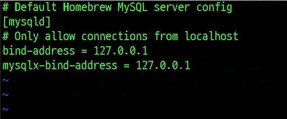 해당 파일을 vi 에디터를 통해 열어보면 MySQL server 설정 정보가 나타나있습니다. 기본 설정은 localhost로 작동하도록 되어 있습니다.