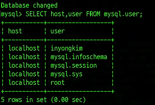현재 계정들은 localhost에 대한 접근 권한을 가진 유저들밖에 없습니다.