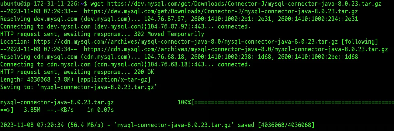 wget https://dev.mysql.com/get/Downloads/Connector-J/mysql-connector-java-8.0.23.tar.gz