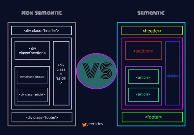 기존 대다수의 프로젝트는 div에 class 값을 붙여서 스타일링하는 식으로 작업해왔다. 하지만 div나 span과 같이 의미가 없는 태그는 태그 이름만 보고는 어떤 내용인지 전혀 유추할 수가 없는 반면, form, table, article 등 의미가 있는 태그는 내용을 명확하게 정의하는데 발전하게 되었다.