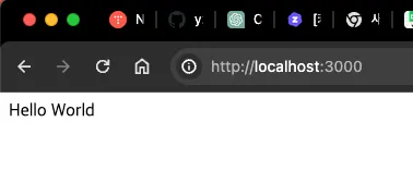 브라우저를 통해 localhost:3000에 접근해본다. 이 접근 요청(req)에 대한 응답(res)으로 Hello World라는 문자열 응답을 보낸 것이다.