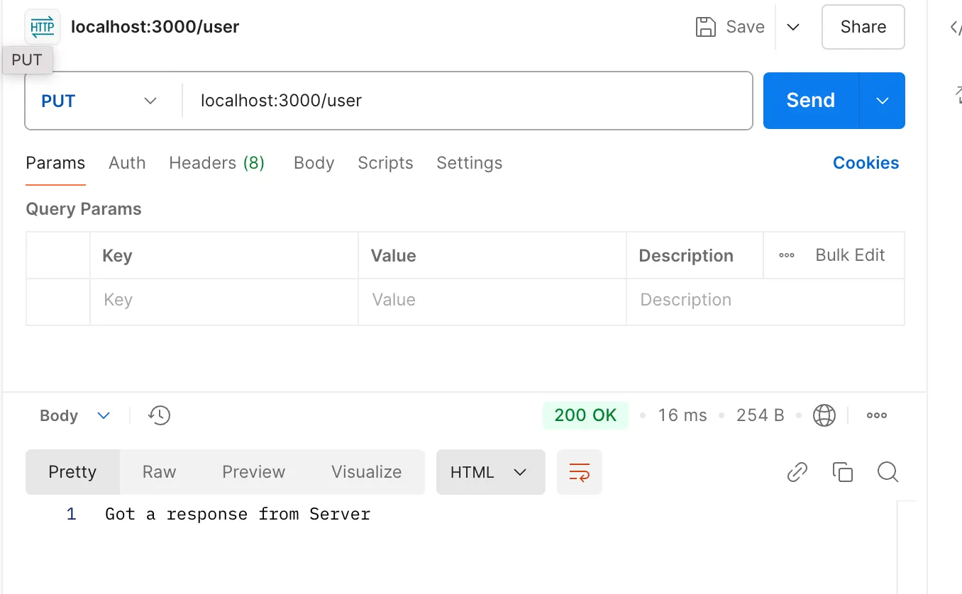 각 라우터가 정상적으로 작동하는지 테스트하려고 한다. 하지만 브라우저를 통해서는 put, delete 메서드가 작동하는지는 현재 상태로는 어렵다. 따라서 curl을 통해서 테스트한다.