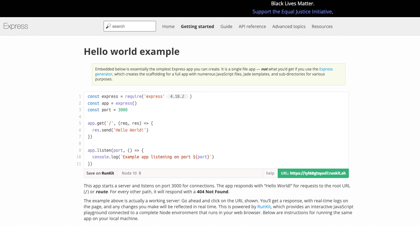 보다 자세한 내용을 정리하고자 Express의 공식문서를 통해서 예제를 수정해보자.