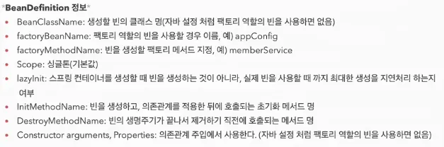 이는 할인 정책만 의존하고 있는 주문 서비스가 할인 정책만 알고 있어도 되는 상황과 유사하다. 스프링 컨테이너는 BeanDefinition인 빈 메타 정보만 알고 있어도 되는 것 같다.