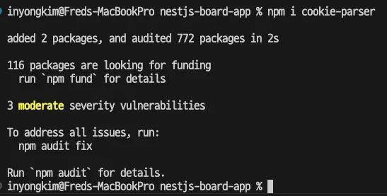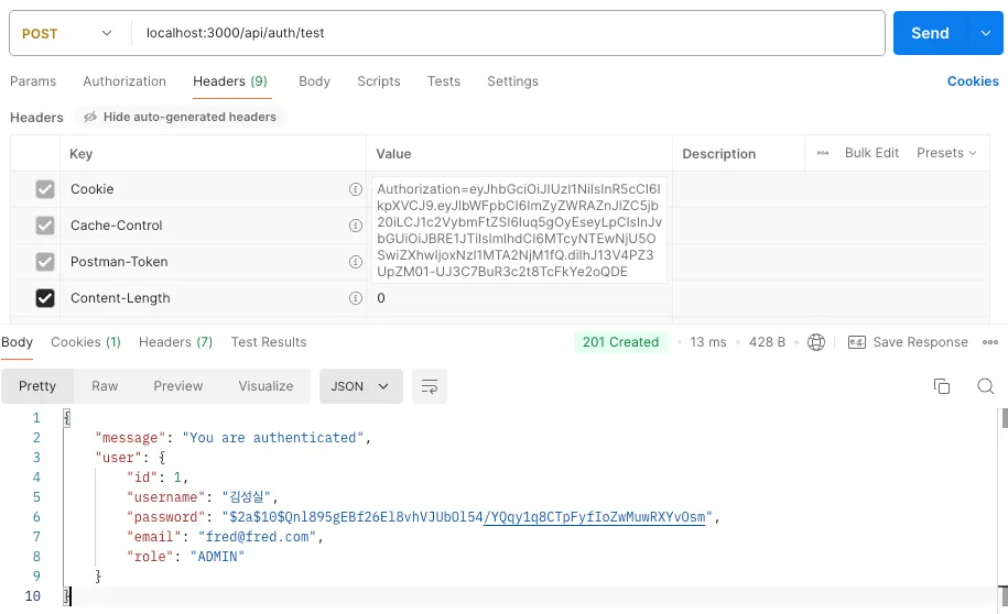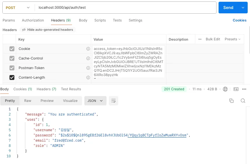 이후 요청마다 cookie(JWT를 포함)토큰을 같이 전달