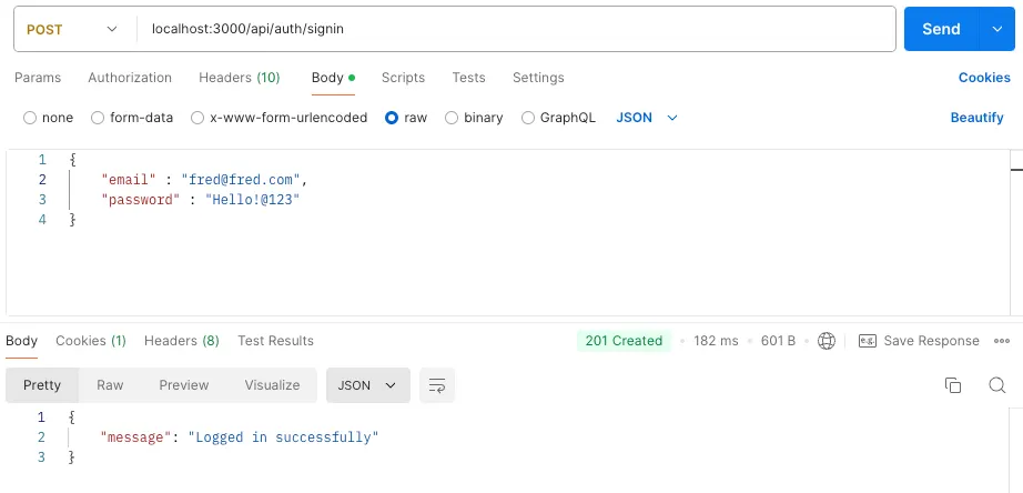 서버는 위 첫 로그인 요청에 대한 응답으로 cookie(JWT를 포함)를 응답에 담아 전달