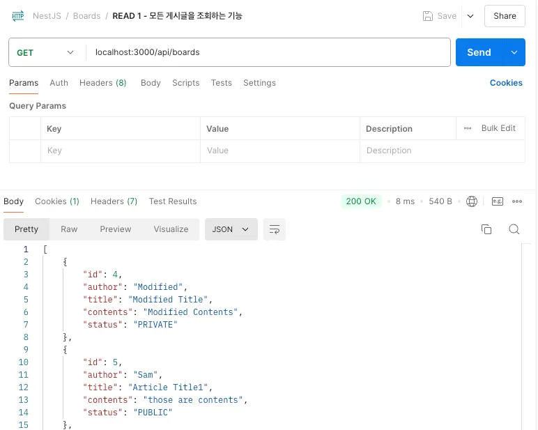 기본적으로 게시판 API는 로그인(JWT 토큰)이 필요하다. (AuthGuard)