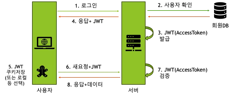 JWT 인증/인가 를 구현 할 때 공통적으로 개발자가 구현하는 흐름은 다음과 같다.