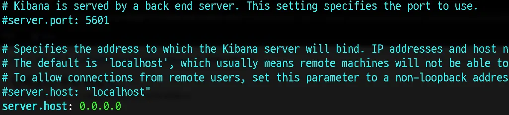 Kibana의 설정 파일은 EC2의 다음과 같은 경로에 위치합니다. vi에디터를 통해 CLI환경에서 파일을 수정합니다.