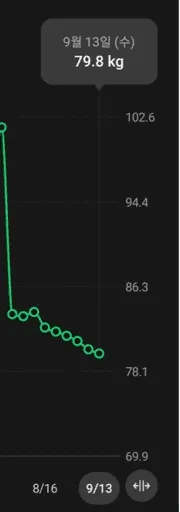 드디어 몸무게 앞자리가 7X대로 들어섰다.