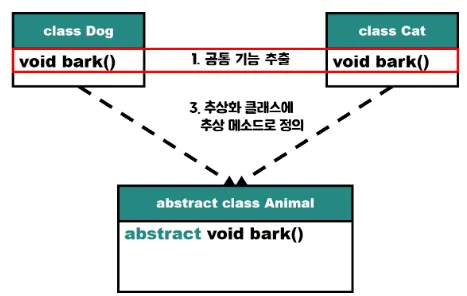 public abstract void bark(); //์ง๋ ์๋ฆฌ๋ ๋๋ฌผ๋ง๋ค ๋ค๋ฅด๋ฏ๋ก ์ถ์๋ฉ์๋๋ก ์์ฑ