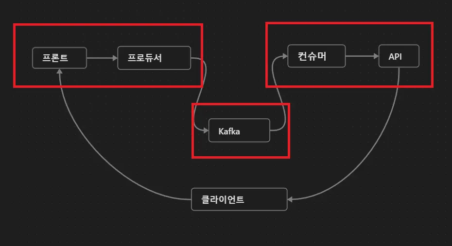 실무에선 컨슈머는 직접 클라이언트에게 응답을 보내지 않고, 결과를 프로듀서에게 전달하고 프로듀서가 클라이언트에게 응답을 보내는 구조로 처리로 합니다.