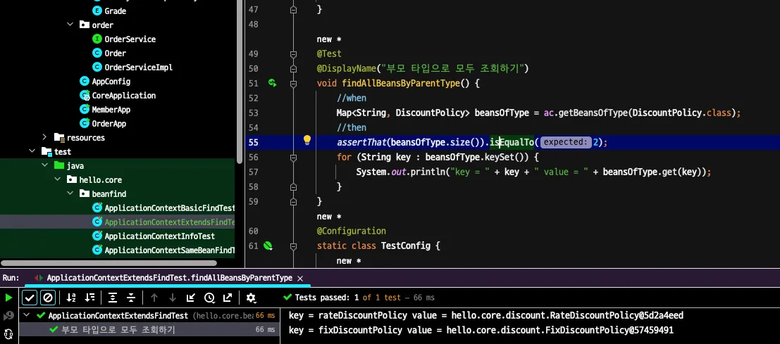 Map<String, DiscountPolicy> beansOfType = ac.getBeansOfType(DiscountPolicy.class);
