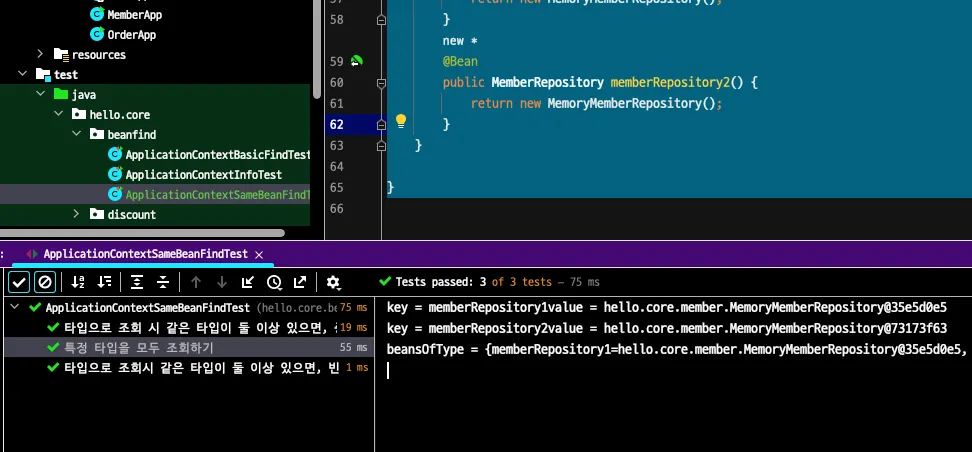 //MemberRepository bean = ac.getBean(MemberRepository.class); // NoUniqueBeanDefinitionException 이 발생