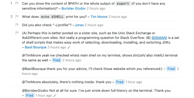 StackOverflow에도 질문을 남겼다. 그러나 대부분 답변은 내가 이미 시도했던 것들을 물어봤고, 코딩에 대한 물음이 아니라 의미가 없었다. 내 컴퓨터의 문제기 때문에 그들은 정확히 알수가 없었다.