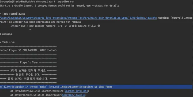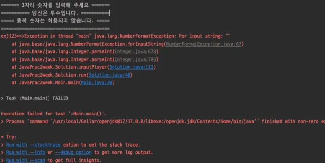 inputPlayer() 메서드에서 입력을 받을 때, 입력이 없는 경우 적절한 안내 메시지를 출력하고 값이 없을 때 반복문으로 재 입력을 유도했다.