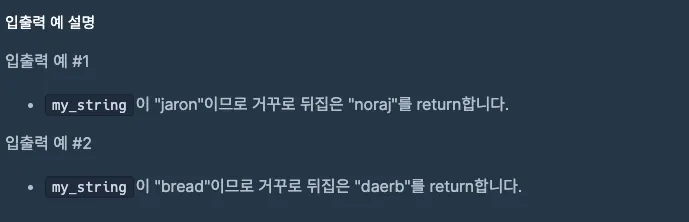문자열 my_string이 매개변수로 주어집니다. my_string을 거꾸로 뒤집은 문자열을 return하도록 solution 함수를 완성해주세요.