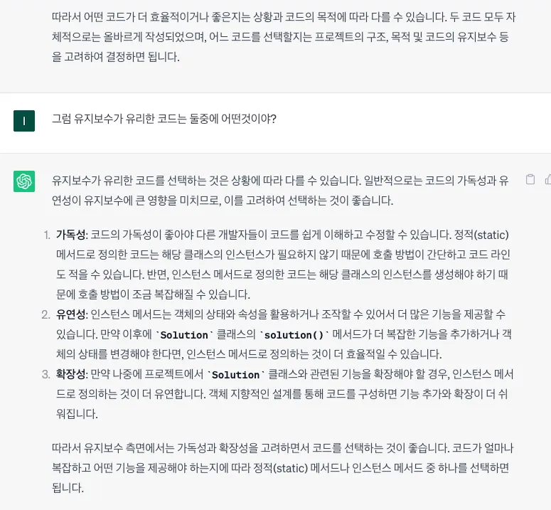 두 코드에 대한 효율성, 장-단점을 알아 보기 위해 ChatGPT 선생님에게 물어봤다.