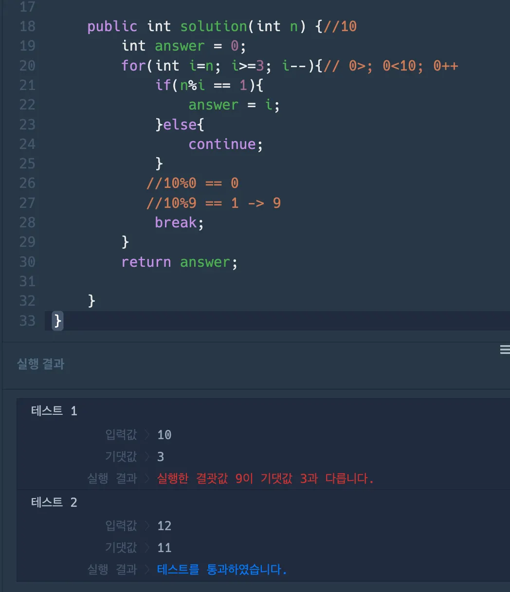 이 또한 반복문이나 조건문 등 제어문 틀은 잡았지만 탈출에 대한 조건을 정확하게 위치하지 못했다. 한번만 더 대입해보면서 가상으로 테스트 할 필요가 있다.
