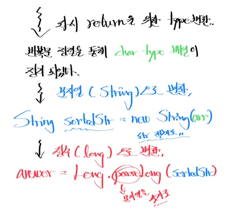 마찬가지로 반환할 값을 보고 역순 또는 반환 타입에 맞추어서 다시 형변환을 해야 하는것도 잊지 말자.