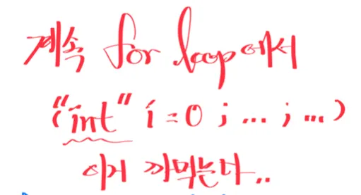 반복문에 초기값 타입 계속 빼먹는다. 정신차려라.