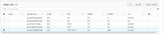 8080열어둬야 외부접속 DDNS설정된 EC2에서 말하는 개방주소로 접속 시 기본 인 80, 또는 8080처럼 서버 포트 22인 SSH , 400 HTTPS 등을 열어둬야 접근 가능하다.