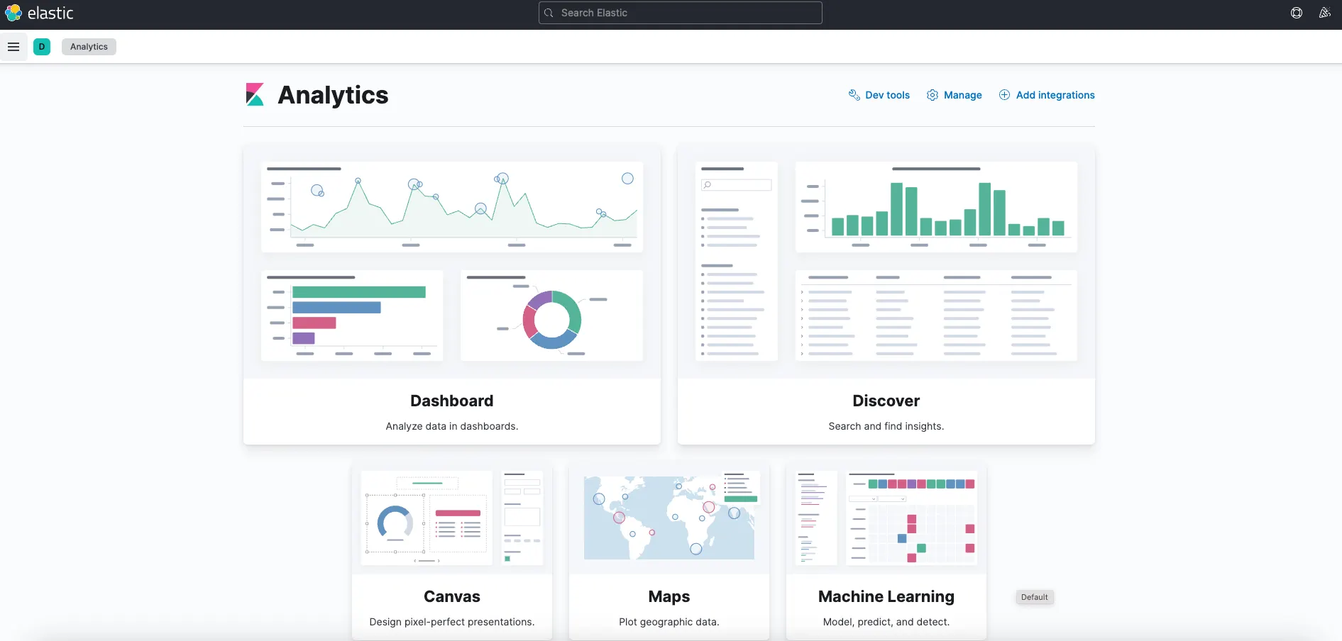 Kibana는 Elasticsearch의 데이터를 관제하고 각종 분석도구를 제공합니다. 시각화를 담당하는 HTML + Javascript 엔진이라 볼 수 있습니다.