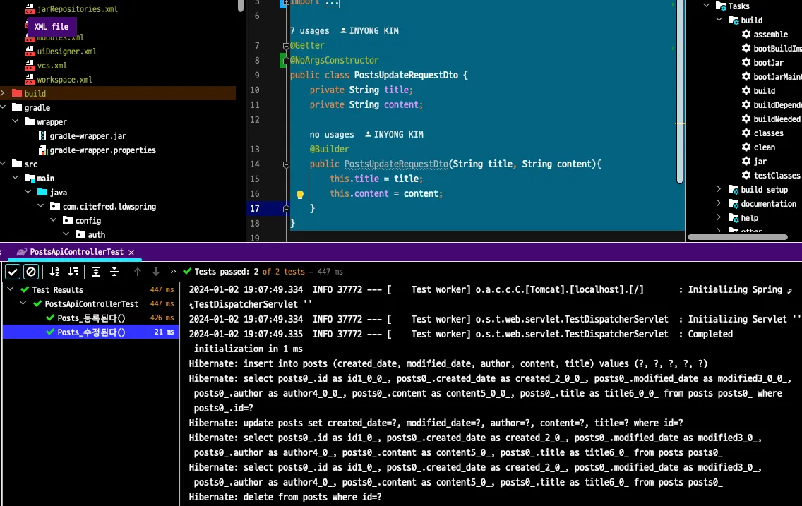 PostsUpdateRequestDto requestDto = PostsUpdateRequestDto.builder()