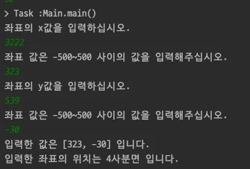 System.out.println("좌표 값은 -500~500 사이의 값을 입력해주십시오.");