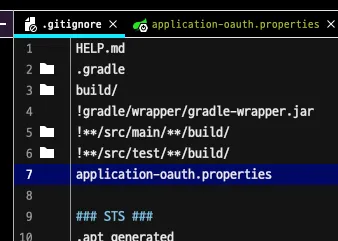clientId와 secret은 github을 통해서 외부 노출되면 안되기 때문에 .gitignore 를 통해서 해당 파일의 git 파일 추적을 제외시킨다.