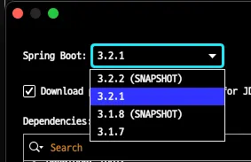 여기서 JDK17을 사용해야 하는 이유가 나타나긴한다. 당장 JDK17버전을 사용하는 것에 대한 문제는 없어보인다. 하지만 스프링 부트의 버전은 고려할 부분이다. 왜 항상 Boot 3.x버전이었을까 생각한 결과 프로젝트 생성 위저드에서 https://start.spring.io 에서의 추천 목록에 항상 3.x 버전이 나타났기 때문이었다. 이에 따라 JDK는 17버전 이상을 강제해왔던 것이다.