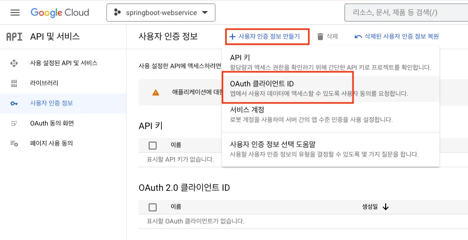 필요한 clientId, clientSecret 코드를 프로젝트에서 사용하도록 설정해야 한다.