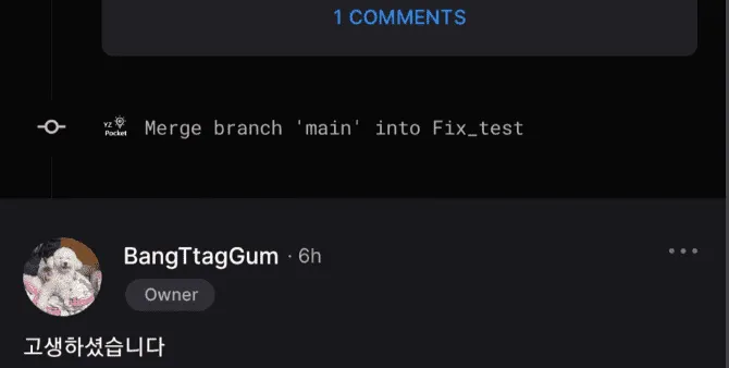 PR작성자는 충돌부분 해결 및 완료 PR 재전송