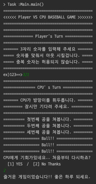 System.out.println("즐거운 게임이었습니다!! 좋은 하루 되세요.");