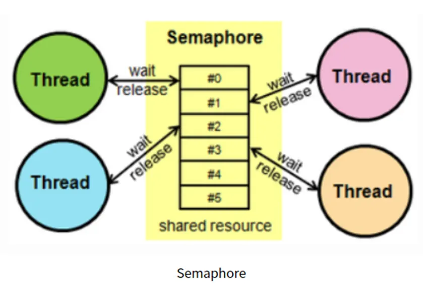 세마포어는 카운트를 기반으로 한다는 점에서 뮤텍스와 차이가 있습니다. 이 카운트 값은 동시에 자원에 접근할 수 있는 스레드의 최대 수를 의미합니다.