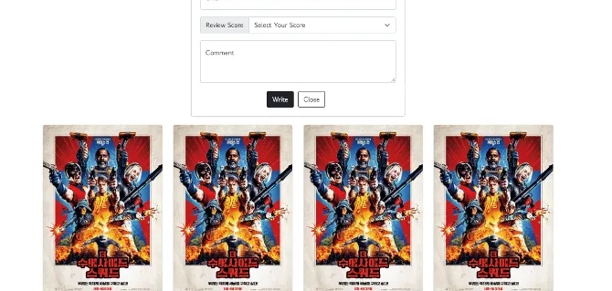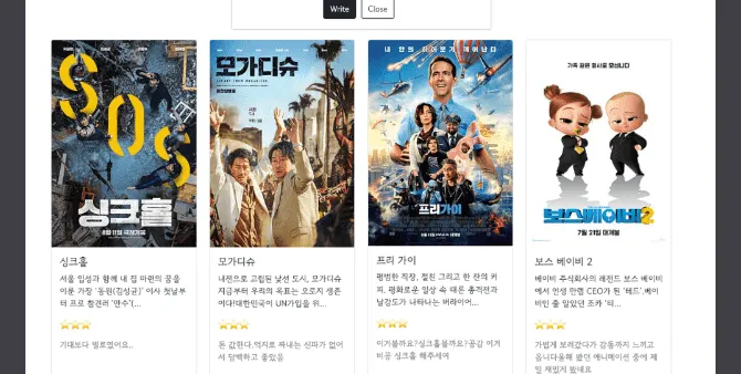하단에 나열되는 "영화포스터+제목+설명+별점+한줄평" 부분이 하드코딩이 아닌