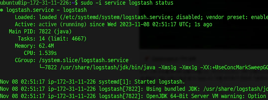 sudo -i service logstash status