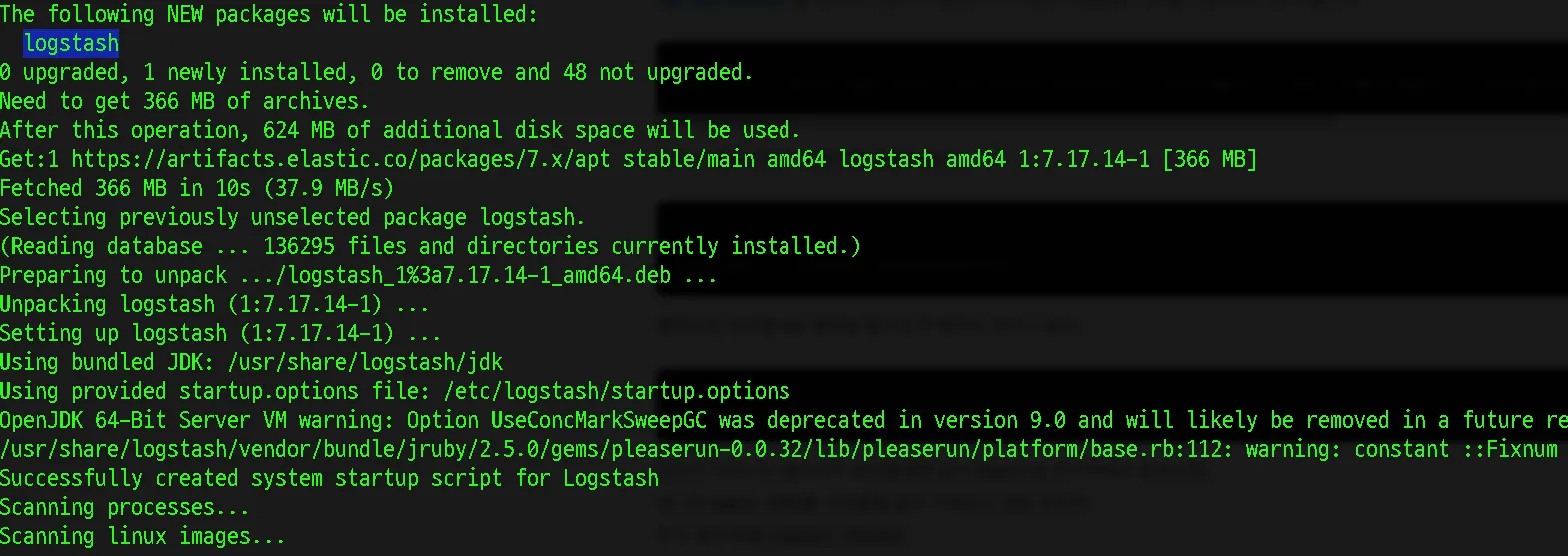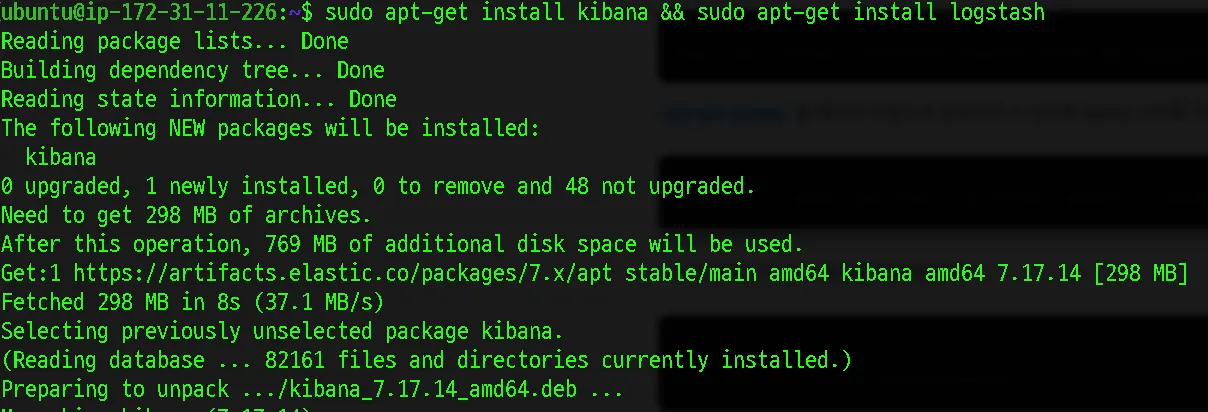 sudo apt-get install logstash && sudo apt-get install kibana
