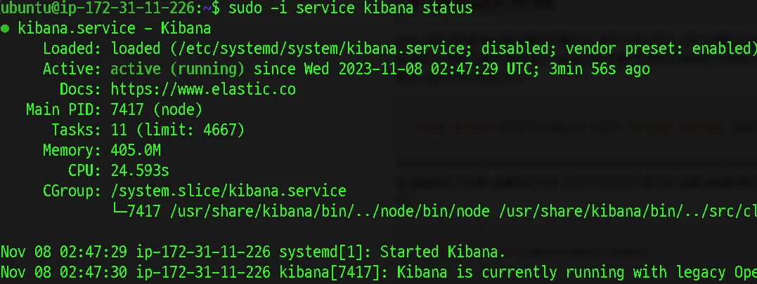 sudo -i service kibana status