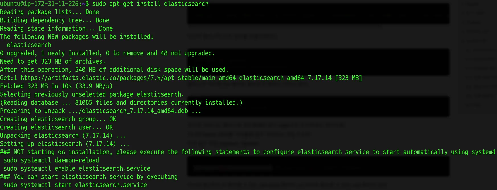 sudo apt-get install elasticsearch