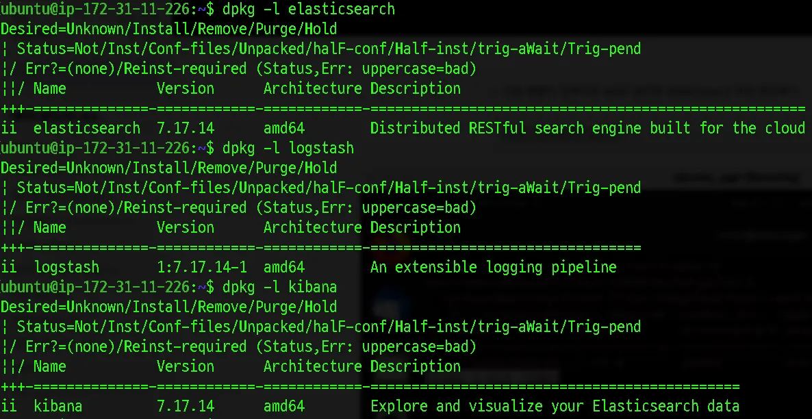dpkg -l elasticsearch