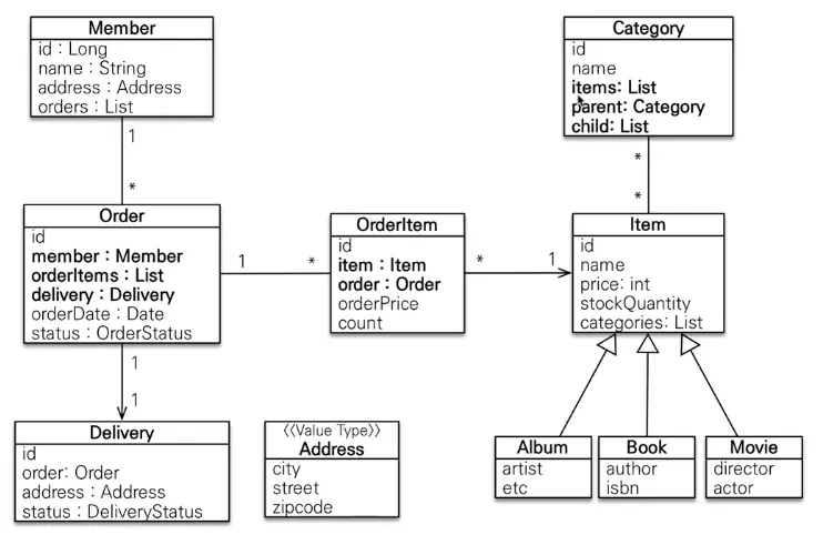 주문:상품 = N:N이 되므로 중간테이블인 주문상품으로