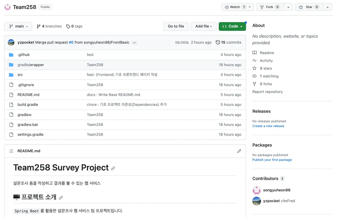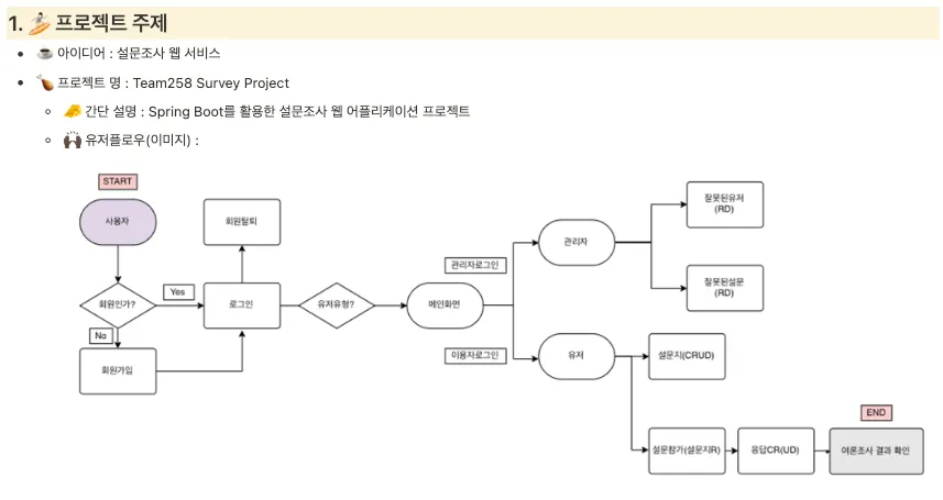 오늘부터 새로운 팀 프로젝트가 시작된다. 백엔드 개발자 4명으로 이루어졌으며, “설문”이란 주제로 MVP를 만들고 서비스 성능 개선을 목표로 하고 있다. 나는 팀장역할을 맡게 되었다.