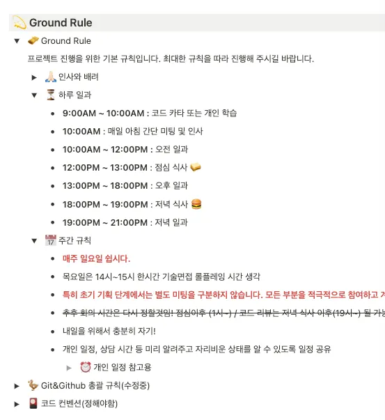 팀 그라운드 룰 및 협업 규칙 설정
