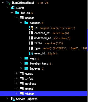Notice, Info, Video, Game 게시글 모두 파일이 첨부될 수 있다. 현재 Game부분은 어떻게 구성할지 좀 더 사례를 찾아봐야하지만, 기본적으로 무언가 여러 종류 게임을 올린다는 의미에서는 게시글과 동일한 것으로 생각했으며 일단 더미로 작성해두었다.